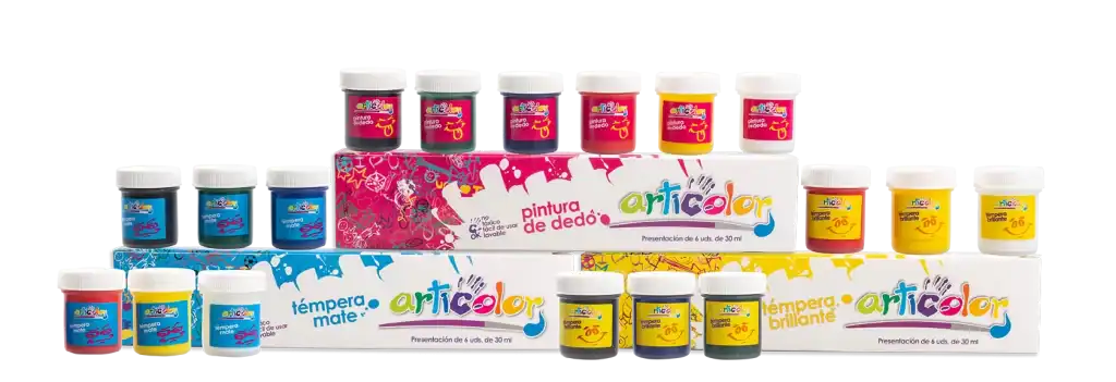 Articolor Pintura de dedo consiste en pinturas a base de agua muy fáciles de utilizar, que se limpian sin dificultad de la mayoría de las superficies lisas.